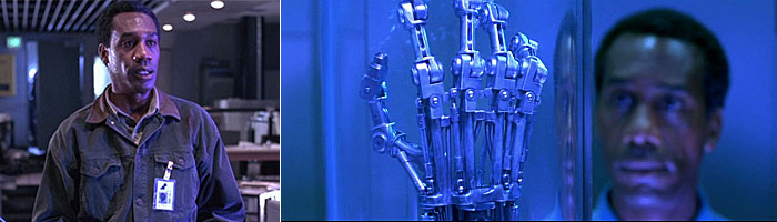 ( …แต่ทุกอย่างจะเปลี่ยนแปลงไป ถ้า John-Sarah หยุดยั้งโครงการ Skynet ได้สำเร็จเมื่อย้อนอดีตกลับไป )- Miles Dyson ผู้อำนวยการโครงการพิเศษ Cyberdyne System Corp. กับต้นแบบหุ่นTerminator ที่อยู่ในระหว่างการพัฒนา -